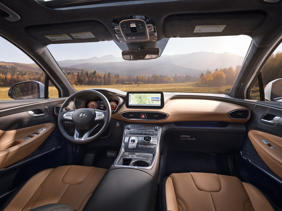 The 2025 Hyundai Santa Fe is packed with cutting-edge technology features designed to keep you connected, entertained, and informed on the go. Standard on all trims is a user-friendly infotainment system with Apple CarPlay and Android Auto compatibility, allowing you to seamlessly integrate your smartphone with the vehicle's display. Higher trims offer a premium 12-speaker Bose audio system, wireless device charging, and a 12.3-inch digital instrument cluster for a fully immersive driving experience.